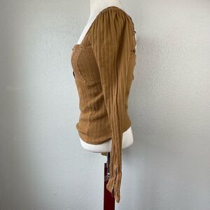 Great top featuring a half button down design. The XS measures 14 inches armpit to armpit laying flat and 21 inches in length from shoulder to hem. The large measures 18 inches armpit to armpit and is 23 inches in length.