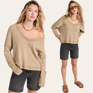 NWT Free People New Magic Thermal Tee shirt beige XS