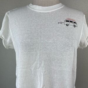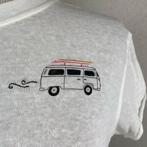 Love the bus design on this top. It features a slightly oversized fit and measures 21 inches armpit to armpit laying flat and is 21 inches in length from shoulder to hem.