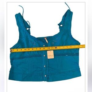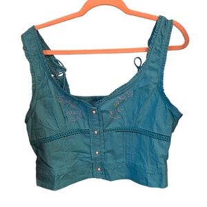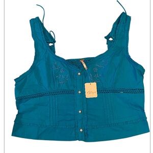 Free People's Kerry tank is crafted of soft cotton and cut in a cropped silhouette. This sleeveless style is detailed with tonal floral embroidery, ruffled accents, and delicate self-tie bows at the back straps.