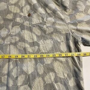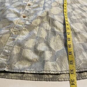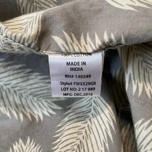 Reverse print gray with cream feathers. Long sleeves, Button down, Collared, Front patch button pocket, 100% Cotton, Retail $60.