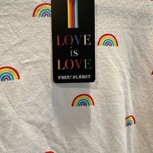 NWT Free Planet White Short Sleeve Tee Top Shirt Small Rainbows A Size Mesium