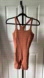 Experience comfort and style with this rust-colored sleeveless bodysuit.