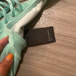 NWT Free press small green ribbed laced up one piece cheeky swimsuit size small