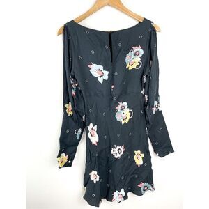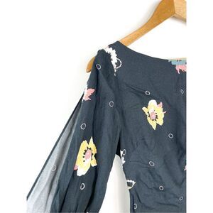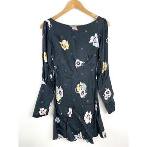 NWT Free People Black Floral Sunshadows Slit Sleeve Mini Dress Size