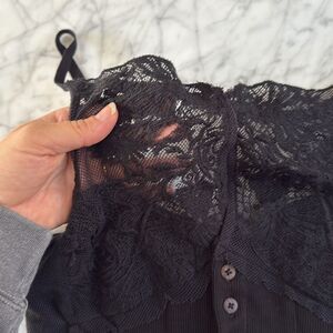 Touches of lace play up the abbreviates charm of a body- hugging, mini ribbed cami with a peekaboo keyhole front.