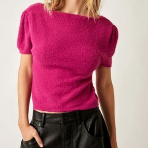 NWT Free People Keep Me Warm Crop Top Fuschia V Scoop Neck Short Sleeves M L