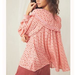 So pretty and printed, this forever femme top is featured in a flowy silhouette with exaggerated sleeves and ruffled scoop neckline for added shape.