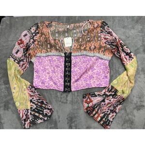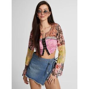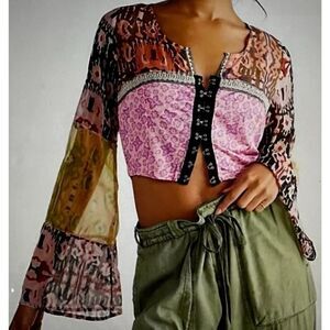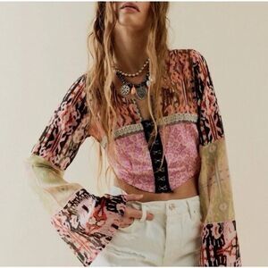 NWT Free People Walk That Way Print Top In Femme Combo sz L