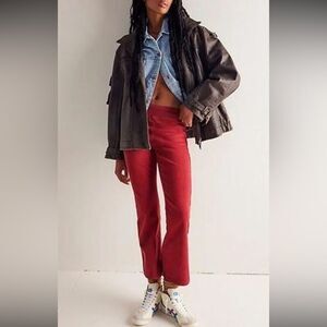 NWT Free People | We The Free | Red In My Feelings Mid-Rise Crop Boot Jeans Sz S