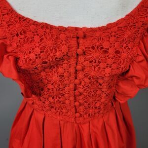 This stunning Free People Half Moon Mini Dress in a vibrant red hue is the perfect blend of flirty and chic. The fit and flare silhouette beautifully accentuates your figure, while the ruffle trim and pleated skirt add a touch of playful elegance. It features convenient hidden pockets and a hidden side zipper for a seamless look. The button-up back closure adds a unique, stylish detail. Perfect for any occasion, this dress is a must-have in your wardrobe. Brand new with tags, never worn