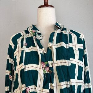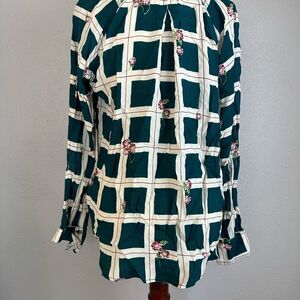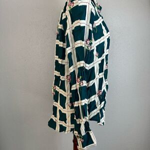 super cute green floral button up! measures 21 inches armpit to armpit and 24 inches shoulder to hem