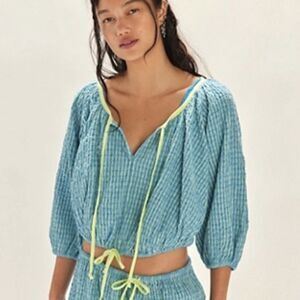 NWT Free-est Free People Clara Plaid Top Bubble Size Extra Small Beachy Crinkle