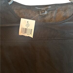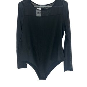 NWT French Connection Black Sheer Mesh Sleeve Bodysuit Size XL Long Sleeve
