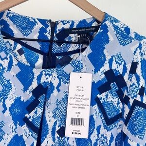 NWT French Connection Blue Python Pixel Mini Dress Short Sleeve