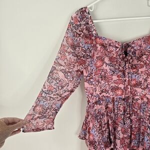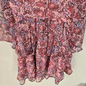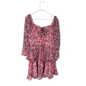 New with tags French Connection Fotini Hallie Floral Tiered Mini Dress in a size 4. Color is called Sea Pink.
