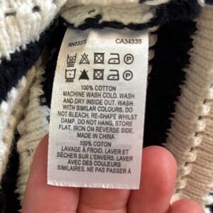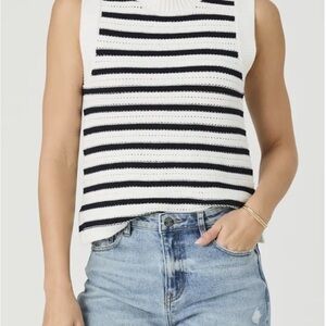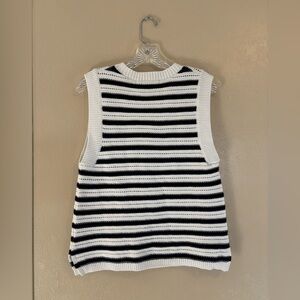NWT French Connection Mozart Stripe Sleeveless Cotton Sweater Vest. Size large. White and navy in color. See details in photos. It is noted this runs slightly on the small side and if between sizes order up.