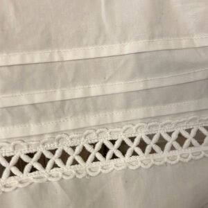 This crisp white tank top from French Connection features a sleeveless design and a boxy silhouette, perfect for a relaxed yet stylish look. The clean neckline and scalloped hem add a touch of elegance, while the bright white color ensures a fresh and modern appearance. Summer wardrobe staple.