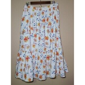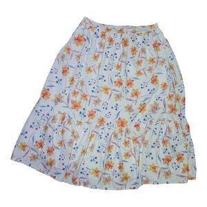 NWT French Connection White Yellow Floral Midi Skirt Flowy Women's Size US 10