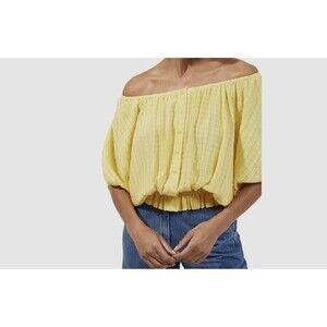 NWT French Connection Women's Yellow Short Sleeve Off Shoulder Blouse Top Size S