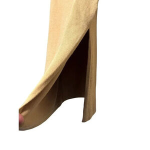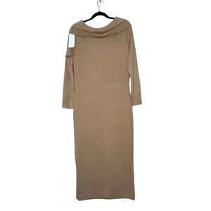 French Connection off the shoulder midi sweater dress size XL. Camel colored , knit sweater dress with a fold over neckline. Ribbed and baby soft with a side slit at left seam. New with tags. Measurements: length-(from top of shoulder to bottom hem)-49 1/2 inches, side slit- 12 inches, chest (underarm to underarm)- 16 1/2 inches and sleeve length ( shoulder to cuff)- 22 1/2 inches.