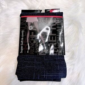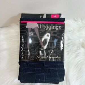 NWT French Laundry High Rise Metallic Thread Black with Blue Leggings Size S/M