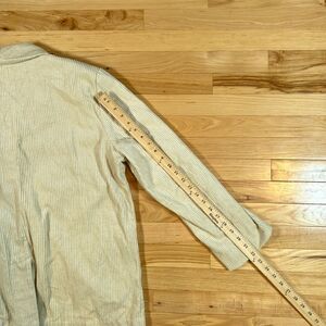 The NWT French Mauve by Free People Khaki Corduroy Dbl Breasted Blazer in size L is a stylish and versatile addition to any woman's wardrobe. Made from a comfortable cotton blend, this blazer features a classic beige color and a corduroy fabric type, perfect for adding a touch of sophistication to any outfit. With its double-breasted design and basic jacket style, this blazer is a timeless piece that can be dressed up or down for any occasion. Retailing at $140, this blazer is a great investment in a stylish and high-quality wardrobe staple.