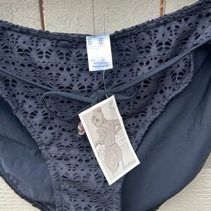 NWT Freya Black Crochet Bikini Bottom Brief With Tie Detail Sz XL Beach Summer Pool Party Boho Feminine