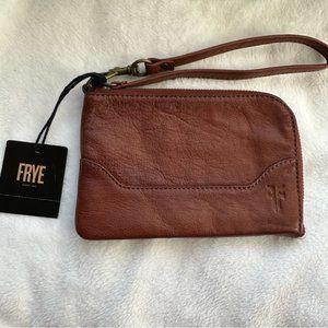 NWT Frye Melissa Leather Corner Zip Wristlet in Cognac
