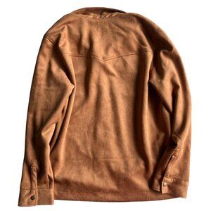 Features: Snap front, faux suede texture, chest flap pockets, cuff snaps, western-style back yoke