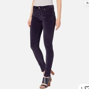 New Frye Melissa Velvet Skinny Jeans in Midnight Blue. Low rise velvet pant features a skinny leg fit. Zip fly with logo button closure.