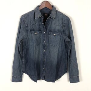 Frye Simona Western Indigo Blue Faded Denim Shirt Women's Size XS Spread collar