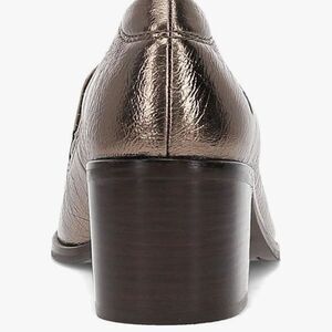 NWT Frye Pointed Toe Leather Sadie Venetian Block Heel Loafers Bronze Size 11M