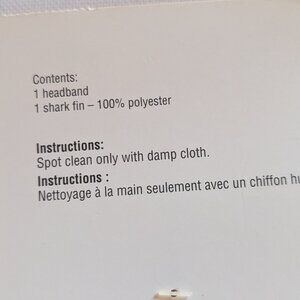NWT adorable grey shark head band and stuffed fin Halloween kids' costume from Michaels. This new on packaging children's costume features a fuzzy grey shark face headband with eyes and teeth, and a matching plush, 3d fin that has elastic straps. Made for ages 3-8 years. An awesome Halloween costume and everyday make-believe outfit for your kids!