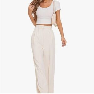 NWT Funyyzo Cream Neutral Wide Leg Dress Pants Trousers. Pleated front with button and elastic waistband. New with tag and never worn no flaws condition.