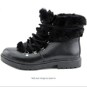 NWT Fur Lined Lace Up Combat Ankle Boot Booties. classic jet black ankle boot combat boot bootie perfect for fall and winter. If it is time to re-energize your shoe closet, nothing could serve you better than picking up a new pair of Inc Pamelia boots. Inc boots are one of the most sought-after pairs of shoes on the market today. Their fantastic manmade soles protect your feet from unnecessary dampness for your extended trips outdoors in inclement weather. The comfort of this pair of genuine Inc