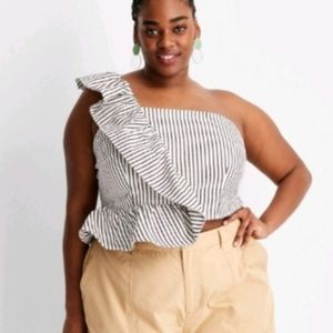 NWT Future Collective Blk/Wht Ruffle Stipe Top