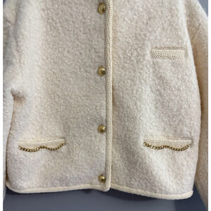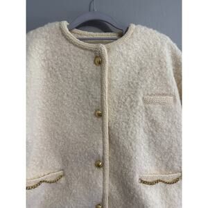 NWT Future Collective Cream Boucle Jacket Gold Buttons Chain Trim Jacket S
