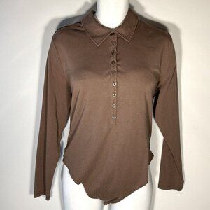 NWT Future Collective Reese Blutstein Mocha Henley Bodysuit Minimalist Academia