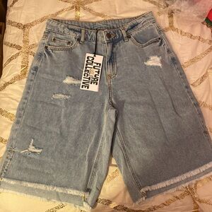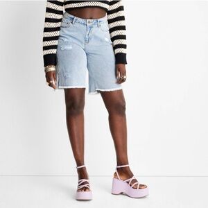 NWT Future Collective with Alani Lightly Distressed Bermuda Denim Shorts
