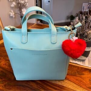 This is an NWT Heart Purse Charm Key Chain. I wish you could feel it through the internet, it is so soft! Very satisfying for sure. It’s about 2 inches tall, I pictured it here on a Portland Leather Small Crossbody purse for size reference.