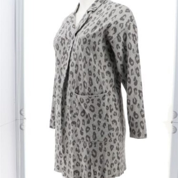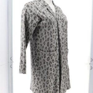 NWT G BY GIULIANA JACQUARD SWEATER KNIT DUSTER CARDIGAN GRAY LEOPARD XS