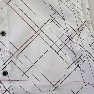 Get a laid-back look in this poplin shirt featuring a contrast hooded top, an allover geometric print, drawstring ties and a sleeveless design. Front button closures.