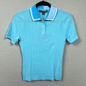NWT G Fore Cotton Blend Ribbed Short Sleeve Sweater Shirt in Powder Blue Sz XS