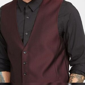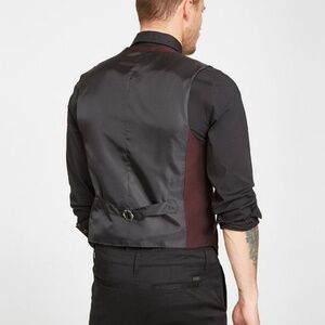 Complete your suiting attire in this textured vest, featuring a front button closures, adjustable back strap and front welt pockets.