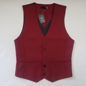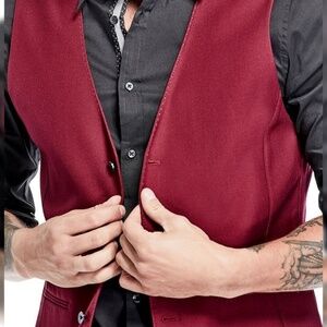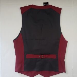 A dobby-weave vest perfect for a night out. Complete with button-front closures, front welt pockets and back satin panel. Adjustable back strap.