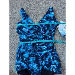 NEW W/ Tags one piece GABAR/Miraclesuit women's size 10; V Neck; supportive, modest, Chlorine Resistant. Awesome suit for beach and water activities! Pre-Owned, but in new, with tags condition. Cute Blue Design.