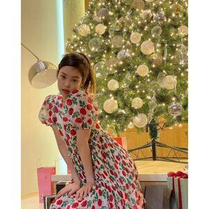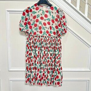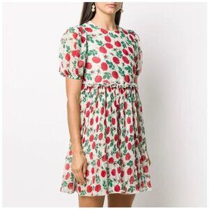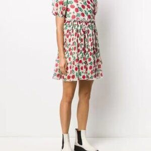 NWT GANNI Floral Print Pleated Georgette Mini Dress Size 36 Jenney