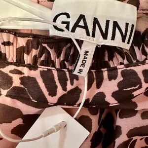 NWT GANNI Pink and Brown Animal Print Blouse Size 34 (4 US)