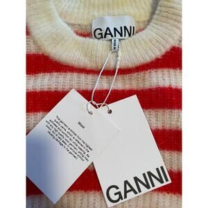 NWT GANNI SWEATER L PULLOVER RED KNIT WOOL ALPACA STRIPED COZY COMFY SOFT